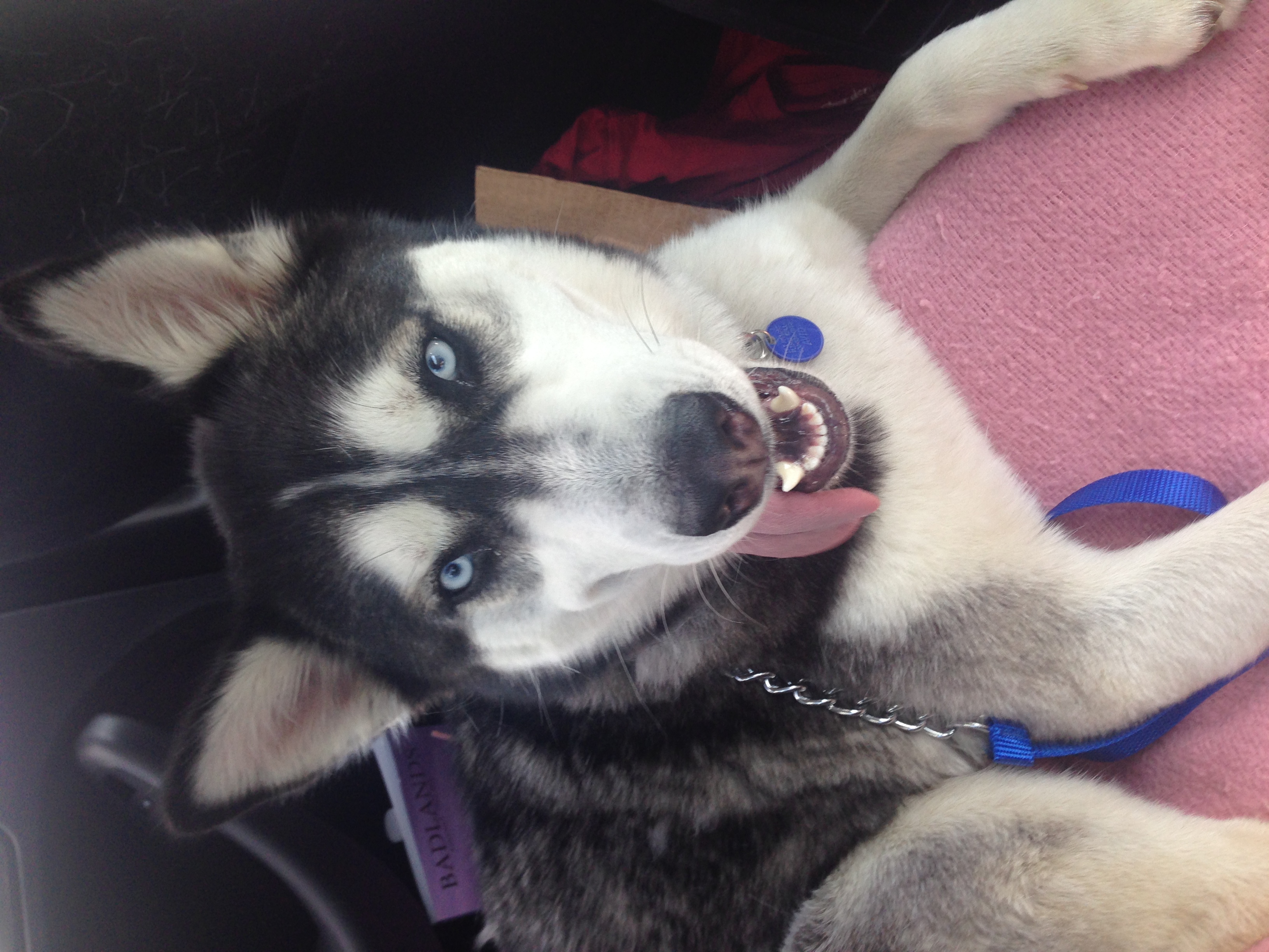 Norah in the back seat the day I brought her home.